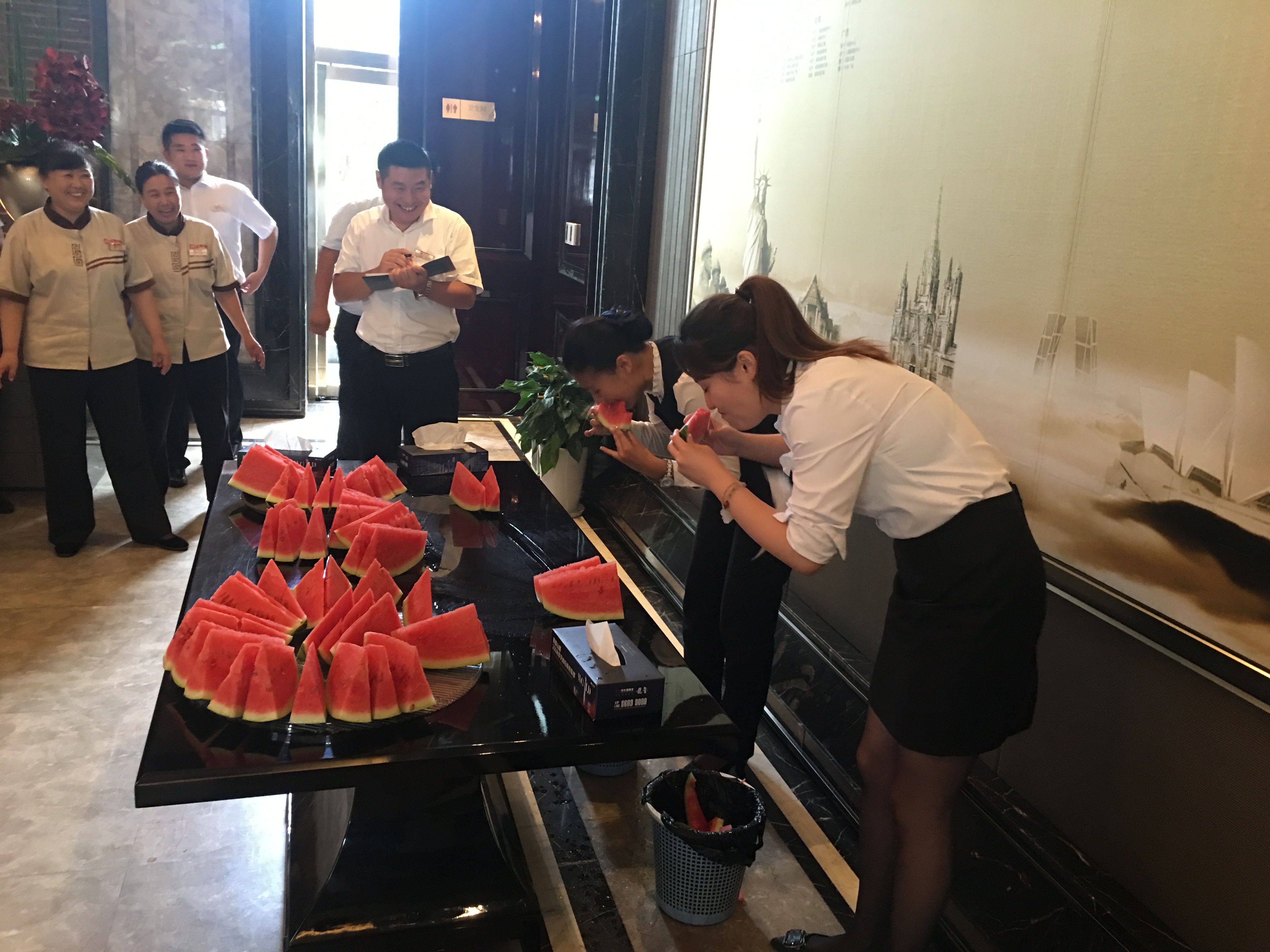 時值八月一日,濟南綠地新都會營銷中心為慶?!鞍艘唤ㄜ姽?jié)”,同時響應(yīng)了公司“消夏”主題活動關(guān)愛客戶的號召,我物業(yè)特舉辦了吃西瓜和包水餃比賽。